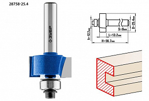 Фреза фальцевая, D= 25,4мм, рабочая длина-13мм, хв.-8мм, d-12,7мм, ЗУБР Профессионал