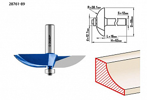 Фреза фигирейная №2, D= 89мм, рабочая длина-16мм, радиус-38,1мм, хв.-12мм, d-12,7мм, ЗУБР Профессионал