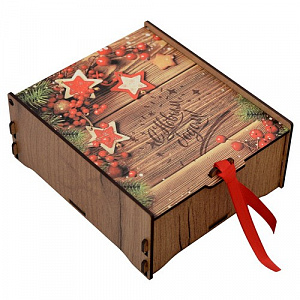 Шкатулка для чайных пакетиков и мелочей "С НОВЫМ ГОДОМ". Размер 18х15,5х7,5см.