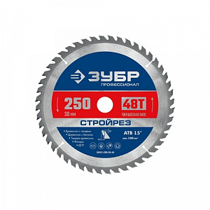 ЗУБР Стройрез 250х30мм 48Т, диск пильный по строительной древесине, 36931-250-30-48, серия Профессионал