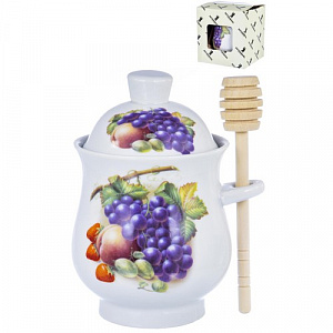 PARTY TIME, баночка (диам.90 х выс.140мм) для меда с деревянной ложкой, NEW BONE CHINA, цветочный декор, цветная упаковка