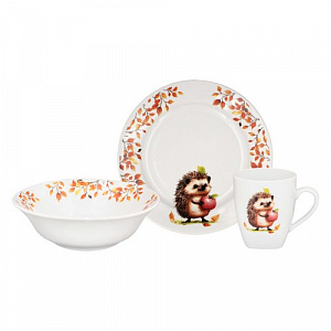 Набор посуды 3 пред. Ежик И.У.(т.175 мм глад,,сал круг.360 мл,кр.210 мл Глория)