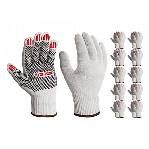 ЗУБР XL (10), х/б перчатки с ПВХ покрытием (точка), 10 класс, 10 пар (11440-XL10)