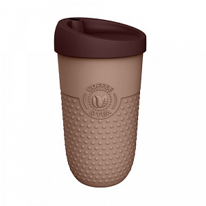 СТАКАН ДЛЯ НАПИТКОВ С РЕЛЬЕФОМ, КРЫШКОЙ 550МЛ (Коричневый)