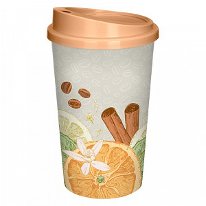 СТАКАН ДЛЯ ГОРЯЧИХ И ХОЛОДНЫХ НАПИТКОВ С КРЫШКОЙ И ДЕКОРОМ "СПЕЦИИ" 400МЛ (Светло-серый)