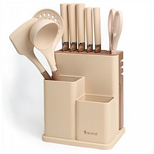 НАБОР AGNESS ИЗ 11ПР: 5 НОЖЕЙ,ПОЛОВНИК,ЛОПАТКА,ШУМОВКА,ПОДСТАВКА,НОЖЕТОЧКА И НОЖНИЦЫ, ЦВЕТ: БЕЖЕВЫЙ