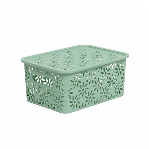 Корзинка "Ромашки" 3л 235х173х105мм с крышкой (нефрит)