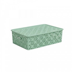 Корзинка "Ромашки" 7,5л 350х245х105мм с крышкой (нефрит)