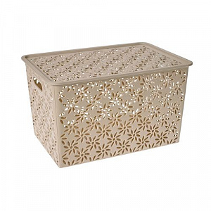Корзинка "Ромашки" 14л с крышкой (латте)