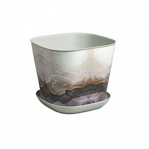 Кашпо квадратное 5,0л. декор "Мрамор" с поддоном (светло-серый)