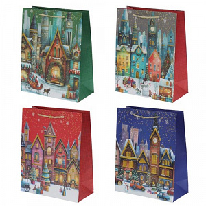 Пакет подарочный (бумага 210г/м2, блок 12шт), L18 W10 H23 см, 4в.