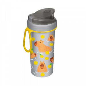 СТАКАН ДЕТСКИЙ С КРЫШКОЙ, ПЕТЛЕЙ И ДЕКОРОМ 400МЛ (Светло-серый)