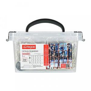 VEGAS 24V Электрогирлянда "Занавес" 96 холодных LED ламп, 6 нитей, в боксе, прозр провод, 1*2 м, с блоком питания, удлиняемая