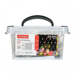VEGAS 24V Электрогирлянда "Сеть" 144 разноцветных LED ламп, в боксе, прозр провод, 1,2*1,5м, с блоком питания, удлиняемая