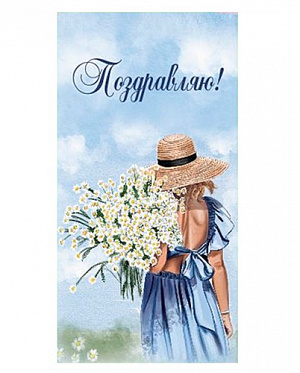 Конверт для денег Поздравляю (холст, девочка с букетом) ЛХ-0166 Dream Cards