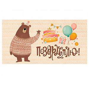 Конверт для денег Поздравляю (медведь) 1-04-0347 Optima
