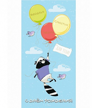Конверт для денег С Днем рождения! Енот с шариками, 5+0 1-04-0601Optima