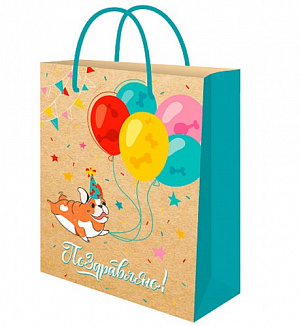Пакет подарочный из крафт 18х23х10 см (craft М) Песик, 130 г(собс.разр.) ППК-2758