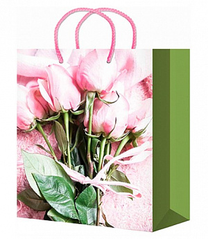 Пакет подарочный с глянцевой ламин 22x31x10 см (МL) Розовые розы, 157 г ППК-4443