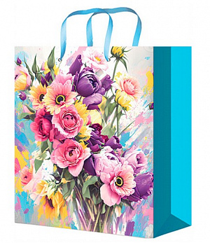 Пакет подарочный с глянцевой ламин 22x31x10 см (ML) Нарисованные цветы, 128 г ППК-4419 * Optima