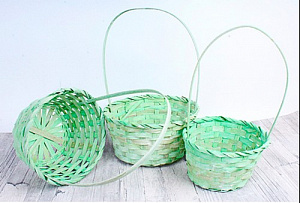 Набор корзин плетеных бамбуковых D16, D18, D21 см, 3шт. светло-зеленый (ш/к 5504) С