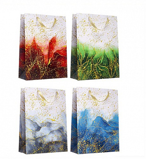 Подарочные пакеты "Листья" в ассортименте, 31x42x12 см, 4 вида, 12 шт. / упак.(ш/к 1995) *