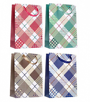 Подарочные пакеты "Тартан" в ассортименте, 22x31x10 см, 4 вида, 12 шт. / упак.(ш/к 1766)