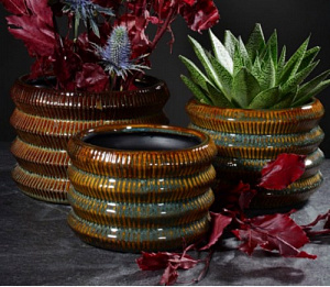 559252 Кашпо керам. Suafé reactivo colori d16 h11 см коричнево-зеленый (ш/к 1071)