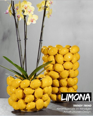 590245 Кашпо керам. Limona gelb d25 h18 см лимоны (ш/к 1159)