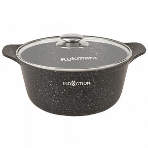 Кастрюля а/пр литая 3,0л стекл/кр Темный мрамор индукция ТМ KUKMARA