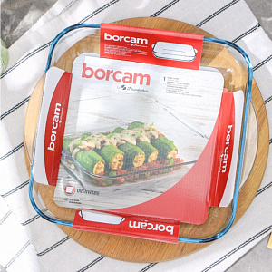 Borcam"жаропр.посуда форма прямоуг. с пластиковой крышкой 280мм*280мм /6 59024 PLS