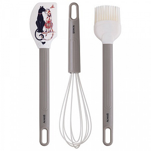 НАБОР: ВЕНЧИК, ЛОПАТКА, КИСТОЧКА AGNESS, 3 ПРЕДМЕТА, СЕРИЯ "ПАРИЖСКИЕ КОТЫ"