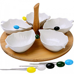 12124 Менажница Листья 5 секций 13пр фарфор LR (х12)