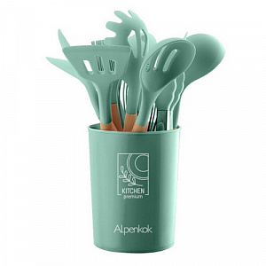 АК-5281 Набор кухонных принадлежностей на подставке 12 пр.(силикон)(16) мятный