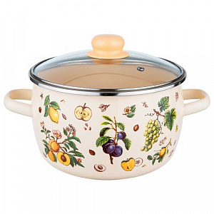Кастрюля эмал сфер Фруктовый сад 3,0л стекл/кр ТМ Appetite