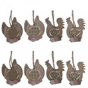 Набор из 8-ми изделий декоративных подвесных "Курица/Петух" (4,5*0,5*6), L12,5 W12,5 H1,5 см