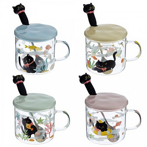 Кружка с крышкой и ложкой, 300 мл, L11 W9 H12 см, 4в.