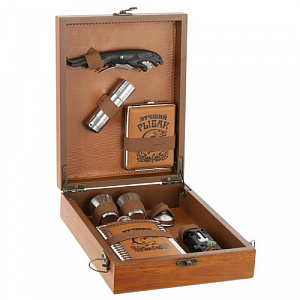 Набор подарочный (фляжка 220 мл, 2 стопки, воронка, портсигар, фонарь, мультитул), L18,5 W24 H6,5 см