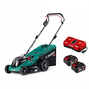 ЗУБР газонокосилка аккумуляторная бесщеточная 400 мм, 2 АКБ LMS (4 Ач) (ГКЛ-4040-42)