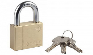 Замок ЗУБР "ЭКСПЕРТ" навесной, латунный корпус, классическая форма, закаленная дужка, 60мм