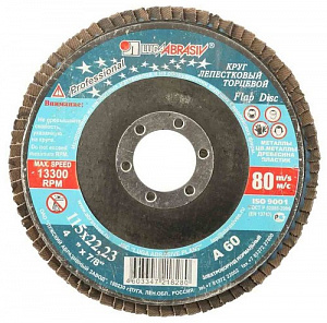 Круг лепестковый торцевой "БАЗ" для шлифования, тип КЛТ 1, KK19XW, зерно-электрокорунд нормальный, P80, 150 х 22 мм