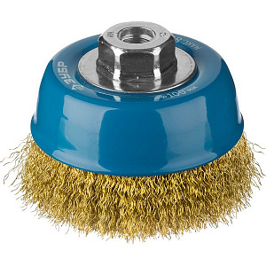 ЗУБР "ПРОФЕССИОНАЛ". Щетка чашечная для УШМ, витая латунированная стальная проволока 0,3мм, 100ммхМ14
