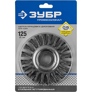 ЗУБР "ПРОФЕССИОНАЛ". Щетка дисковая для УШМ, плетеные пучки стальной проволоки 0,5мм, 125х22мм