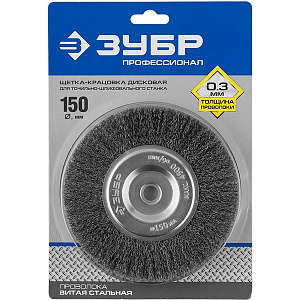ЗУБР "ПРОФЕССИОНАЛ". Щетка дисковая для точильно-шлифовального станка, витая стальная проволока 0,3мм, 150х12,7мм