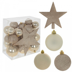 Украшение новогоднее "Шар и звезда", набор из 30 шт + 1 звезда, D20/8/6/5/4/3 см Полимерный материал