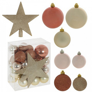 Украшение новогоднее "Шар и звезда", набор из 30 шт + 1 звезда, D20/8/6/5/4/3 см Полимерный материал