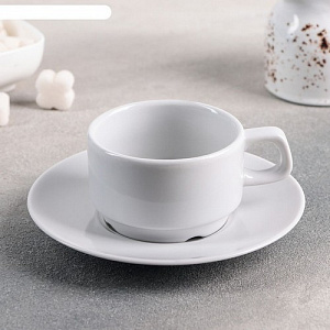 Чашка чайная с блюдцем 170 см3 Белая Штабелируемая