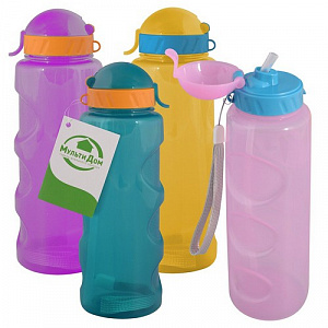 Бутылка для воды и других напитков с трубочкой "На стиле". Объем 500 мл.. 4цв NEW