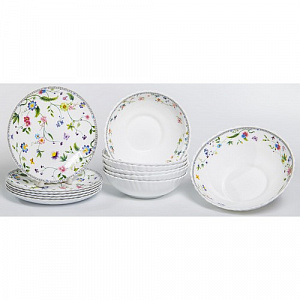 МАНУЭЛА, набор столовый (13), 6 мелк.тарелок 190мм + 6 салатников 650мл 175мм + салатник 950мл 200мм, стеклокерамика, цветная упаковка