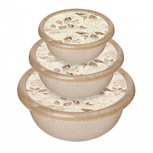Комплект мисок "Palermo" 3 шт. (1,2л+2,1л+3,2л) с крышками с декором (бесцветный флэк)
